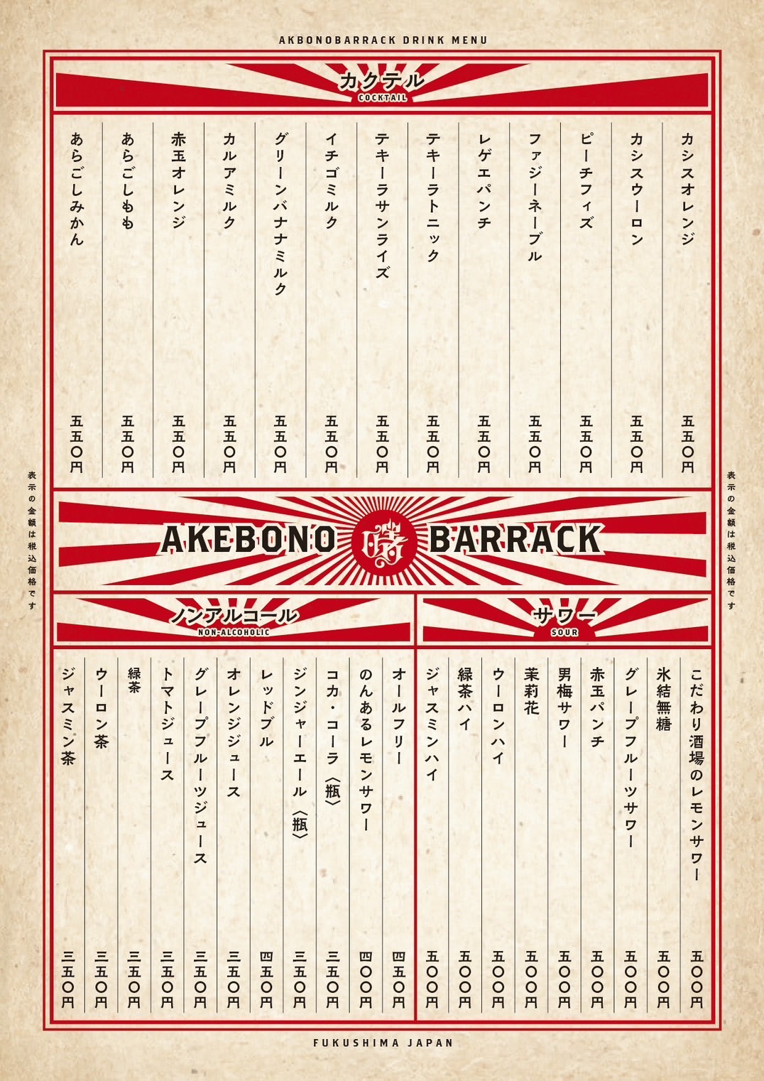 ドリンクメニュー